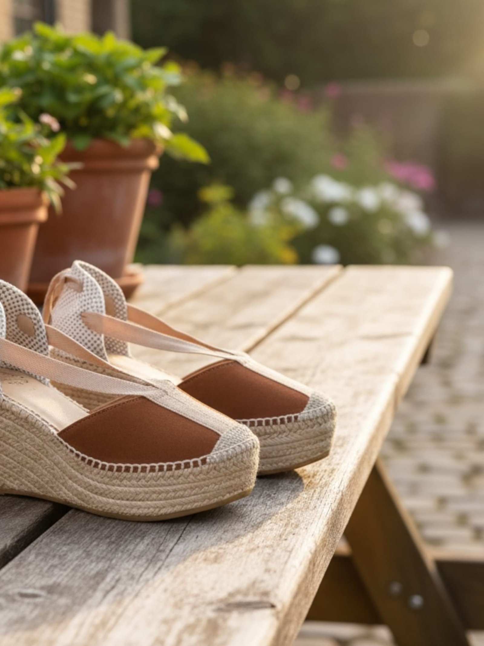 Las cintas que se atan al tobillo aportan sujeción y un toque femenino y sofisticado, evocando el estilo clásico de las alpargatas de las costas catalanas.